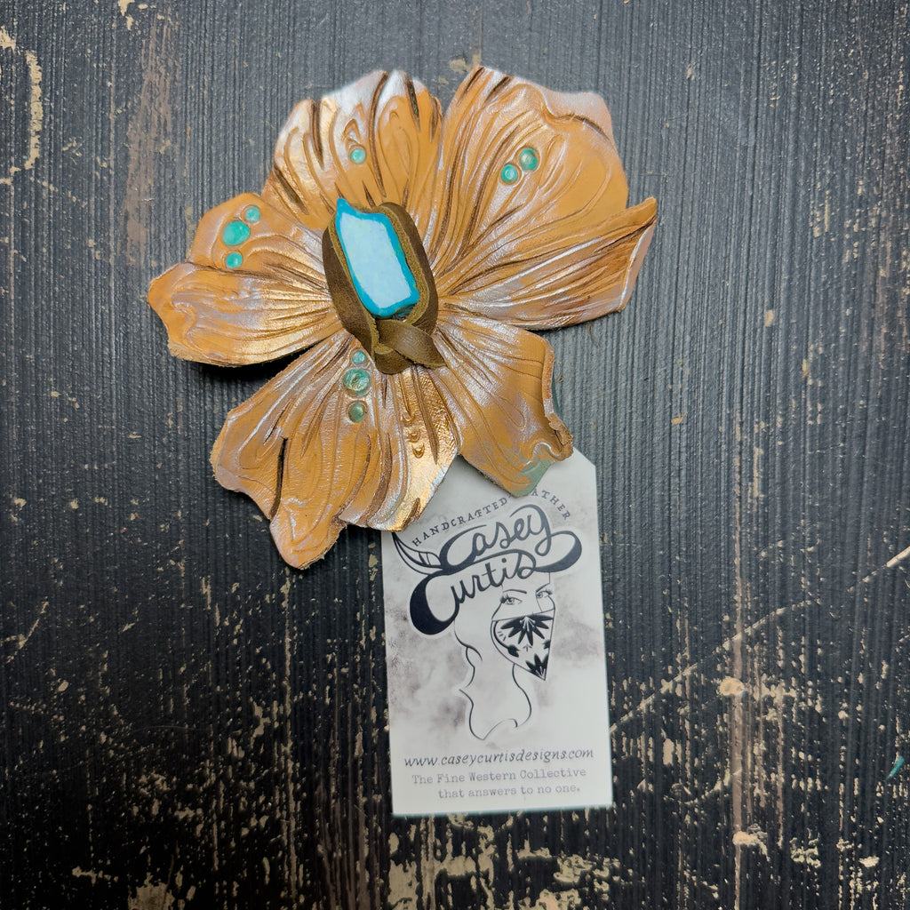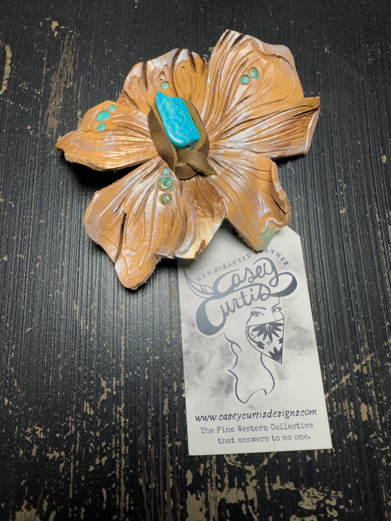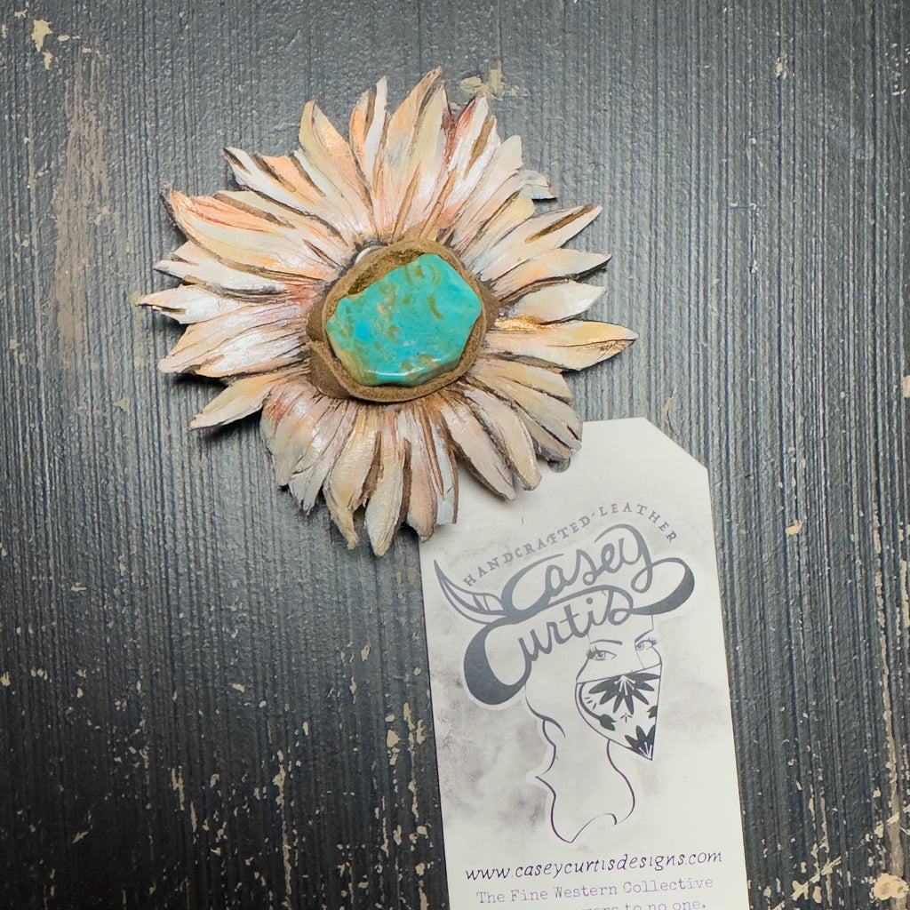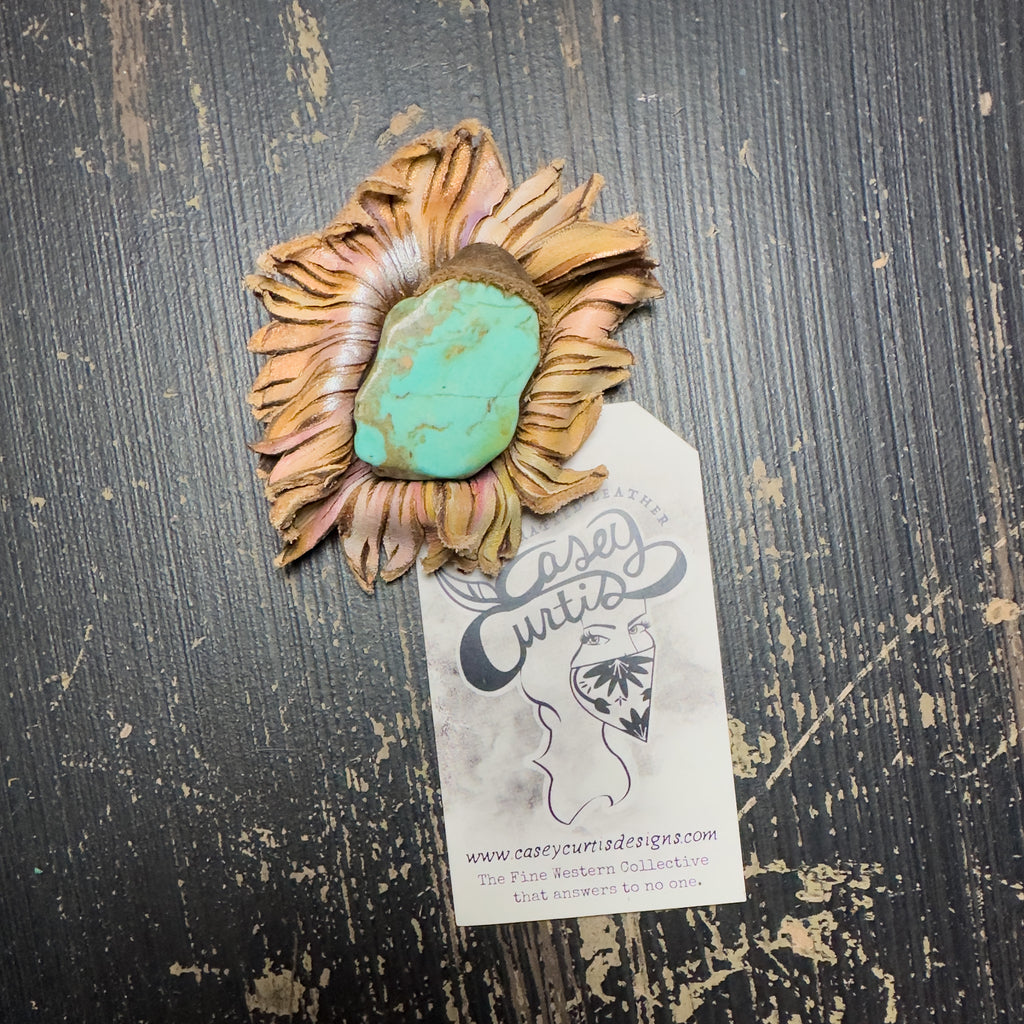 Leather Flower Bolo/ Magnetic Hat Pin - Kingman Turquoise