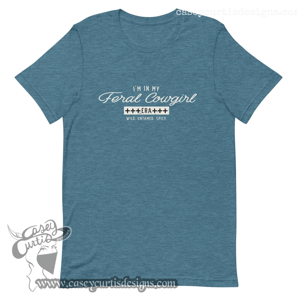 I'm in my feral cowgirl era! This retro tee is perfect for anyone who loves the boho, vintage look. With a comfortable fit, it's a great choice to dress up or dress down. Whether you're heading out to a rodeo, exploring the desert, or just need a new fall shirt, this Western graphic tee has got you covered. So why wait? Order now and embrace your inner cowgirl with this must-have country shirt!