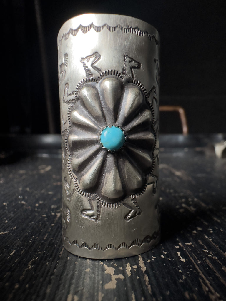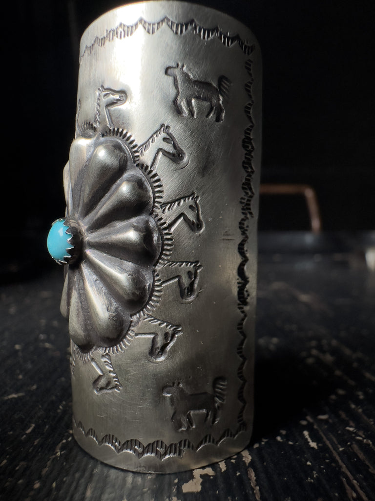 Sterling Silver + Kingman Turquoise hair accessory for braid or ponytail Large